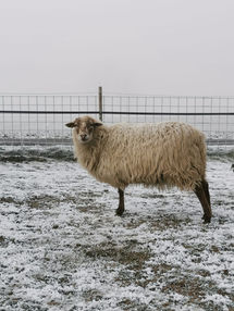 Romy wirkt sehr zart und ist ebenso scheu. Sie schaut sich Menschen gerne aus sicherer Entfernung an. Wenn die anderen Schafe sich ganz nah an den Menschen mit dem Sack voll Heu herantrauen, nimmt sie manchmal auch all ihren Mut zusammen.